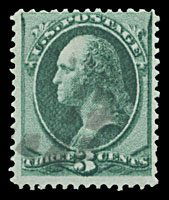 1873 USA #158j BANKNOTE 3¢, DOUBLE IMPRESSION