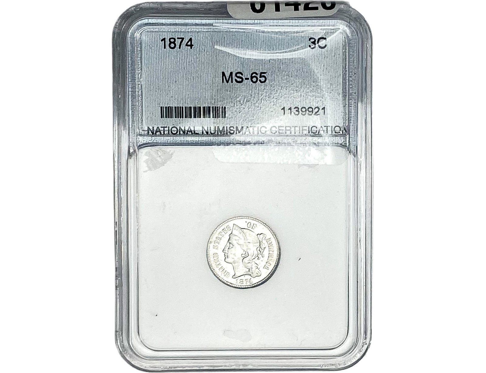 1874 Nickel Three Cent NNC MS65