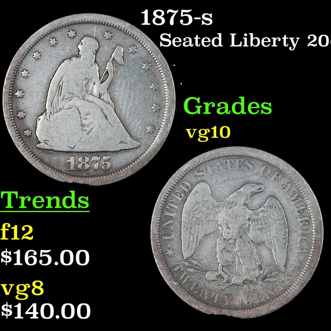 1875-s Twenty Cent Piece 20c Grades vg+