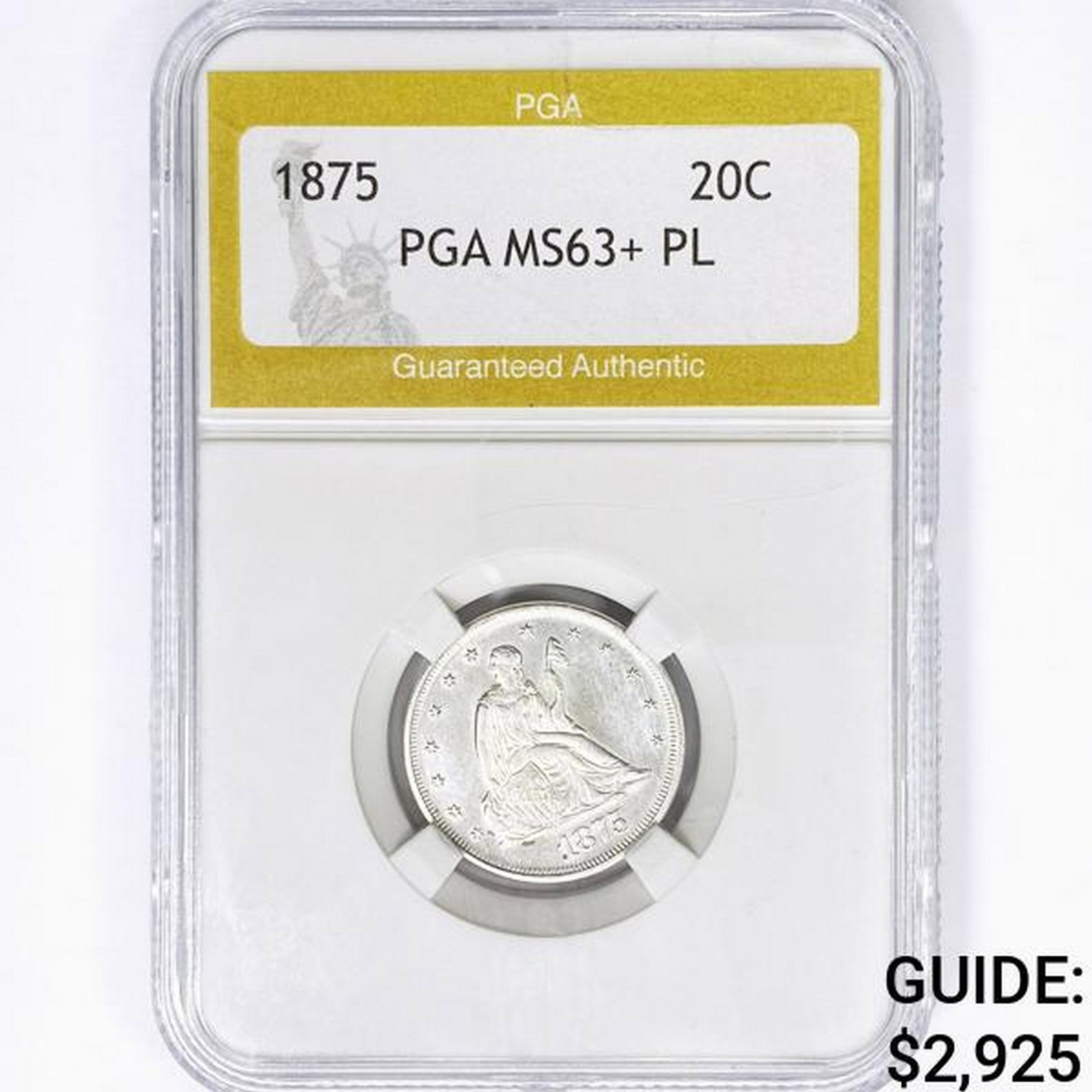 1875 Twenty Cent Piece PGA MS63+ PL