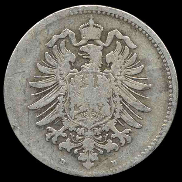 Sold1875D Germany 1 Mark Silver KM-7 Grades f, fine1875D Germany 1 Mark Silver KM-7 Grades f, fine.See Sold Price