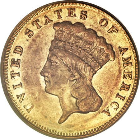 1877 $3 AU50 PCGS.