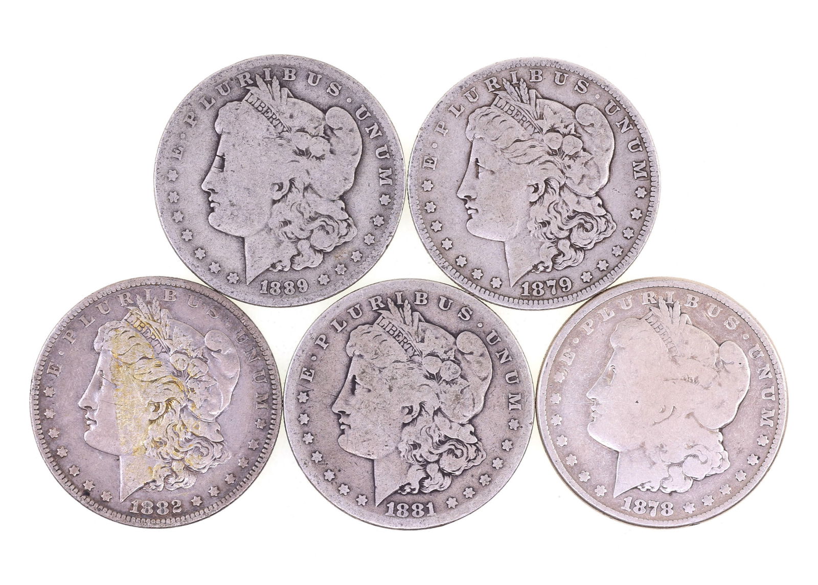 Lot of 12 Morgan Silver Dollars | Mixed Dates & Mints | 1878–1899 | Original U.S. Silver CoinsApr 22, 2026Three Morgan Silver Dollars 1898 1899 1899 Circulated LotApr 18, 2026(10) U.S. MORGAN SILVER DOLLARSMar 28, 202612 US Morgan Silver Dollars3 days Left12 US Morgan Silver Dollars3 days LeftGroup of 20 US Morgan Silver DollarsMar 28, 20261889 & 1921 US Silver Morgan Dollars, 3616 Lots AwayGroup of 10 1900 US Morgan Silver DollarsMar 28, 2026Group of 10 US Morgan Silver DollarsMar 28, 2026Group of (6) 1896 Morgan Silver DollarsMar 28, 2026Group of 16 US Morgan Silver Dollars Pre 1921Mar 28, 2026Group of (6) Morgan Silver DollarsMar 28, 2026Group of 4 US Morgan Silver DollarsMar 28, 2026Group of 4 1879 US Morgan Silver DollarsMar 28, 2026Group of 4 US Morgan Silver DollarsMar 28, 20261882 & 1883 O 90% SILVER MORGAN DOLLARS - (4)Mar 28, 2026