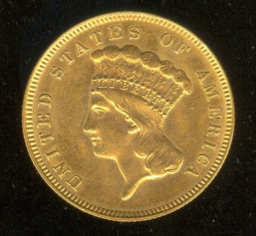1863 THREE DOLLAR INDIAN GOLD COIN $3