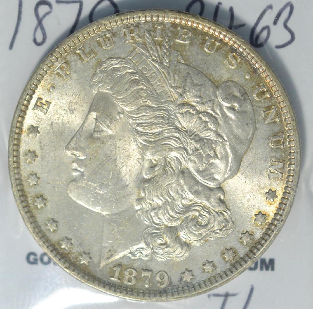 Sold1879 Morgan Silver Dollar Choice BU Toned1879 Morgan Silver Dollar Choice BU Toned Uncertified #104 Certification: Uncertified Circulated/Uncirculated: Uncirculated Year: 1879 Composition: Silver Mint Location: No Mint Mark Km Number: 110 DeSee Sold Price