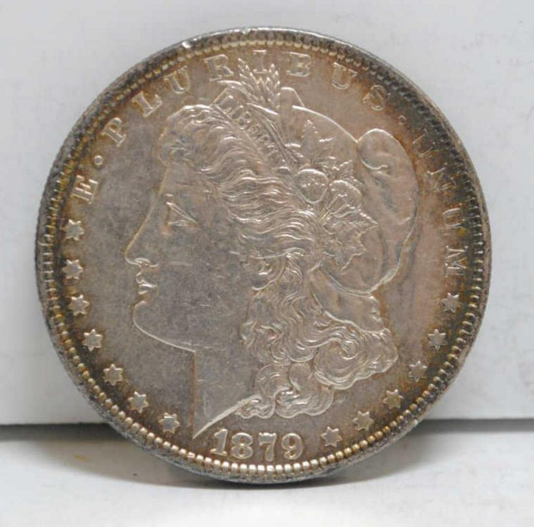 1879-O Morgan Silver Dollar AU50 Reverse Toning