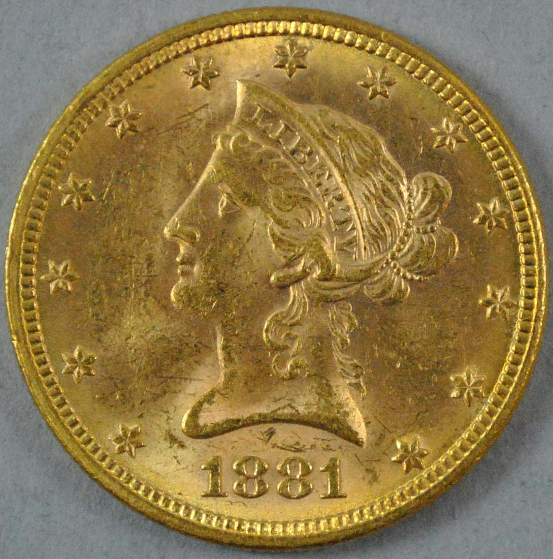 1881 $10 Liberty Head Eagle CLOSELY UNCIRCULATED