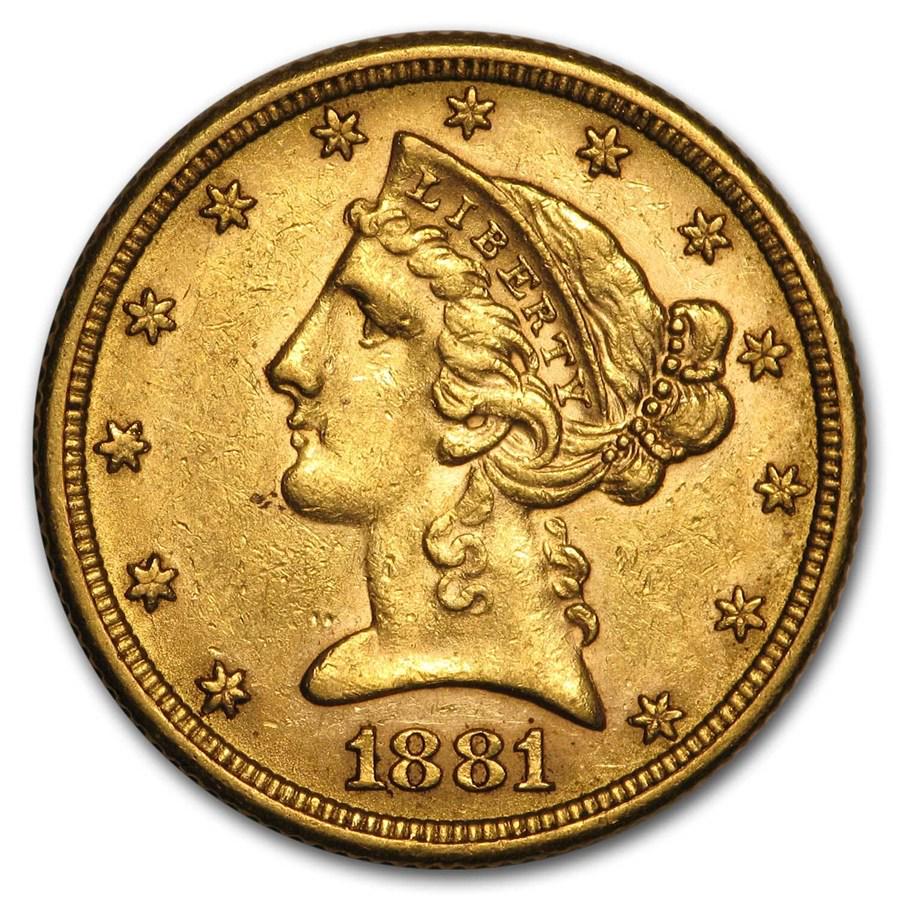 1881 $5 Liberty Gold Half Eagle AU