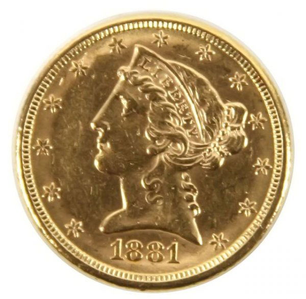 1881 GOLD HALF EAGLE $5.00 XF AU