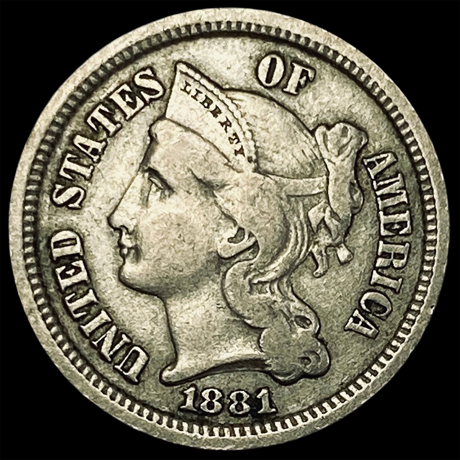 1881 Nickel Three-Cent Piece NEARLY UNCIRCULATED