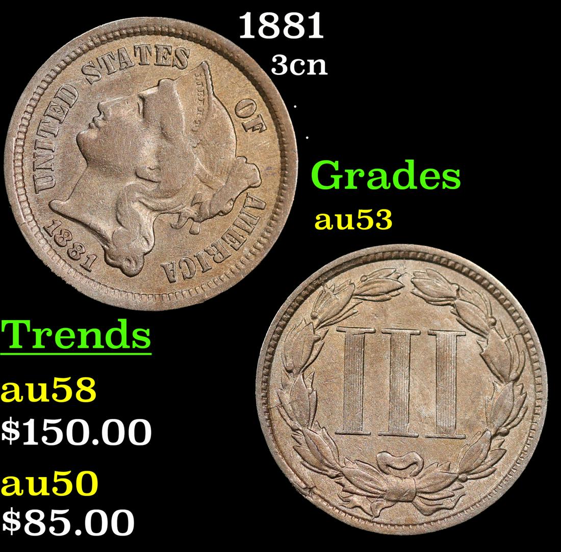 1881 Three Cent Copper Nickel 3cn Grades Select AU