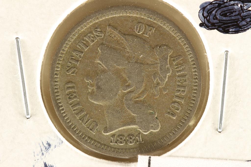 1881 THREE CENT PIECE (NICKEL) (FINE)