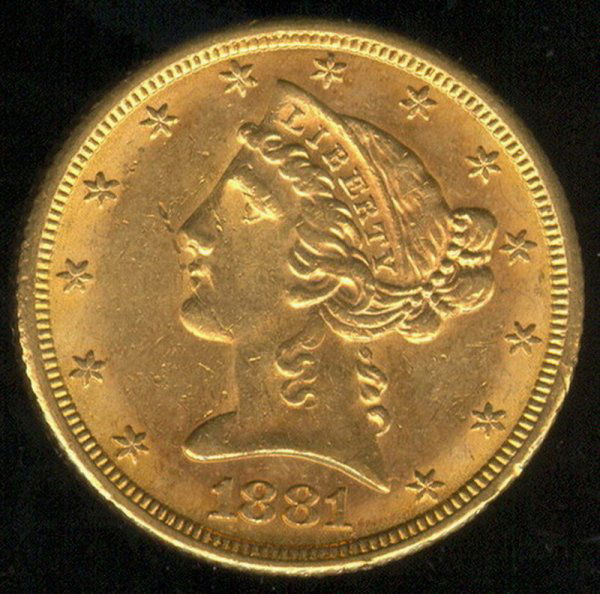1881 U.S. GOLD FIVE DOLLAR COIN