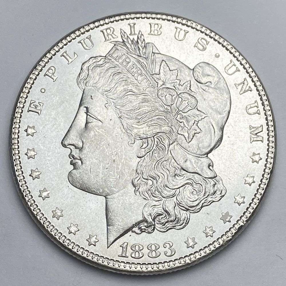 Sold1883 MORGAN SILVER DOLLAR, MS-64ESTIMATE, $100.00 TO $120.00 SILVERTOWNE AUCTIONS SHIPS ITEMS WON WITHIN 48 HOURS OF RECEIPT OF PAYMENTSee Sold Price