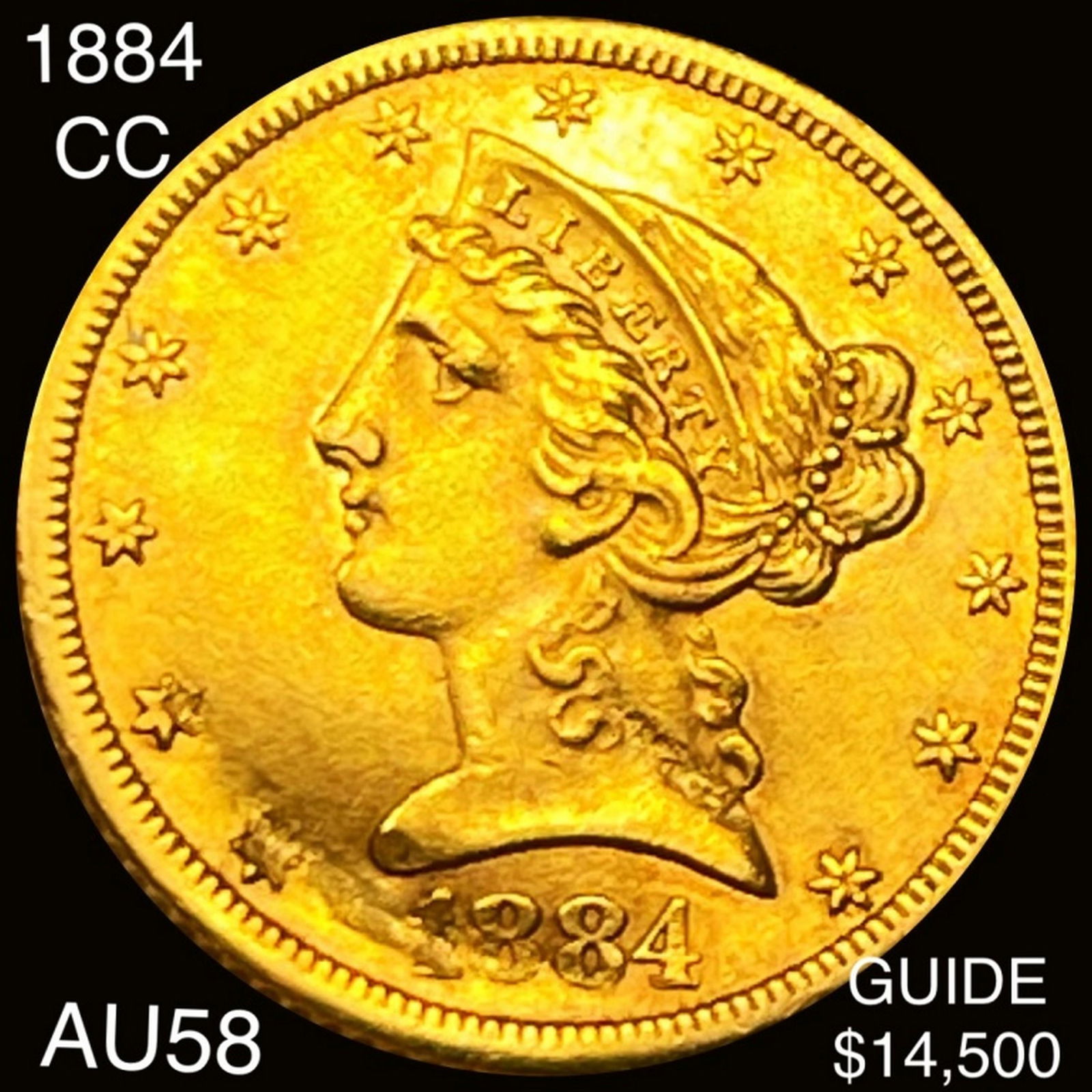 1884-CC $5 Gold Half Eagle CHOICE AU
