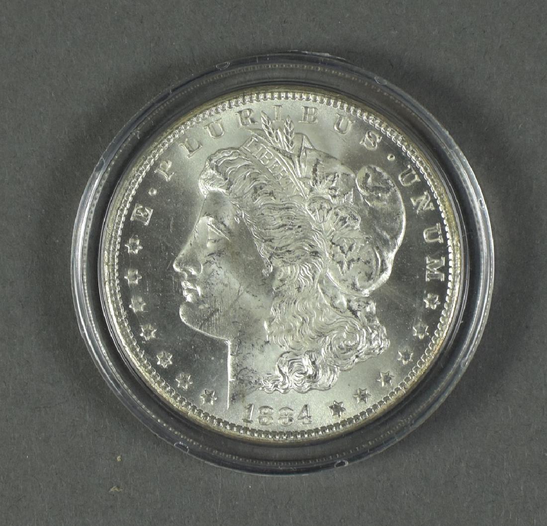 Sold1884 CC Morgan Dollar Uncirculated with Certificate1884 CC Morgan Dollar Uncirculated with Certificate. J/MSee Sold Price