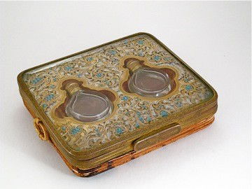 A lot of two antique Bohemian cut glass objects with mounted cabochon stones and brass mounting208 Lots AwayA TURQUOISE INLAID BRONZE AND SILVER 'FISH' TINDER POUCH, CHUCKMUCK, 19TH CENTURYMar 11, 2026A TURQUOISE INLAID GILT COPPER AMULET BOX, KHEDI, 18TH -19TH CENTURYMar 11, 20262 Powder Flasks w Mechanical Measures at SpoutMar 07, 2026A Chinese Brass-Mounted Snuff Bottle with Figural Insert, 20th Century, 24FG978 Lots AwayTwo antique French ormolu mounted glass and porcelain jewelry caskets/ trinket boxesMar 15, 2026Apollo Studios Bronze & Crystal Perfume Bottles4 days LeftGilt - bronze Chiseled Enamel Snuff Bottle Set (Including Box)Mar 08, 202619th French Century Gilt & Patented Bronze & Crystal Perfume Bottles3 days LeftRUSSIAN PERFUME BOTTLE w. DIAMONDs & RUBYMar 21, 202619th Century French 18K Gold Hand-Painted Porcelain Perfume Bottle with Leather CaseMar 05, 202619th Century French 18K Gold Hand-Painted Porcelain Perfume Bottle with Leather CaseMar 04, 2026Antique 1855 French Rosewood Vanity Case by Peret with Cut Glass Accessories636 Lots AwayLimoges France Perfume Bottles Trinket Box 4pcs2 days Left19th Century French Napoleon III Gilt Bronze Glass Cave a Liqueur with Crystal Decanters3 days Left19TH CENTURY FRENCH SEVRES PORCELAIN PERFUME BOTTLESMar 07, 2026