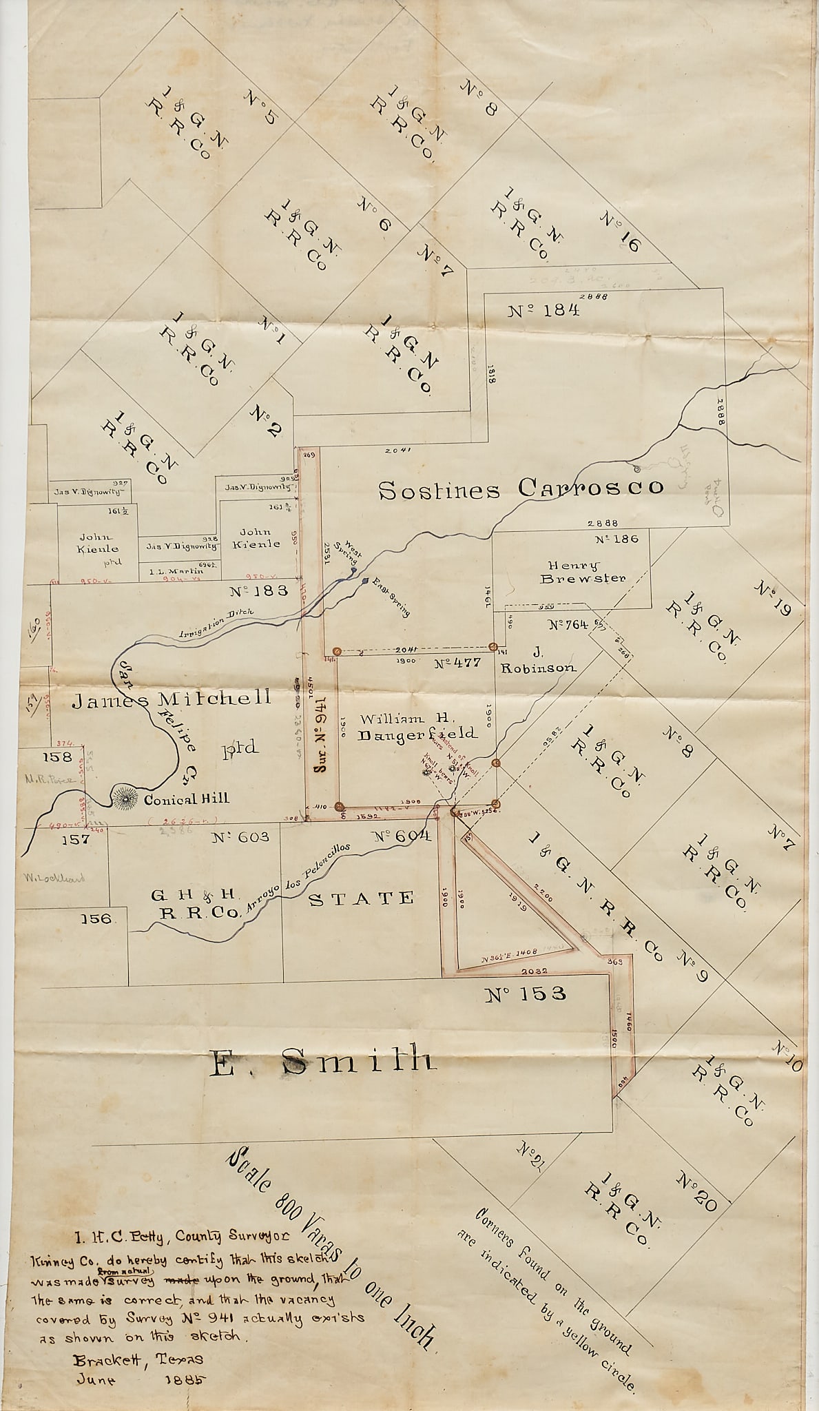 1885 Bracketville, Texas Land Plat Map