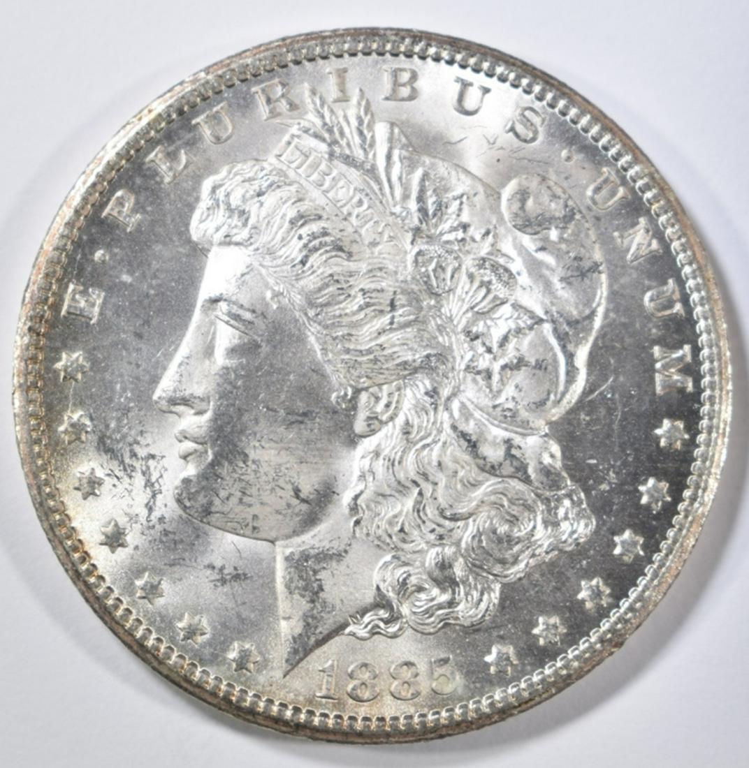 Sold1885 MORGAN DOLLAR CH BUSILVERTOWNE AUCTIONS IS KNOWN FOR QUALITY & SERVICE. REGISTER TO BID! ESTIMATE $80-$90See Sold Price