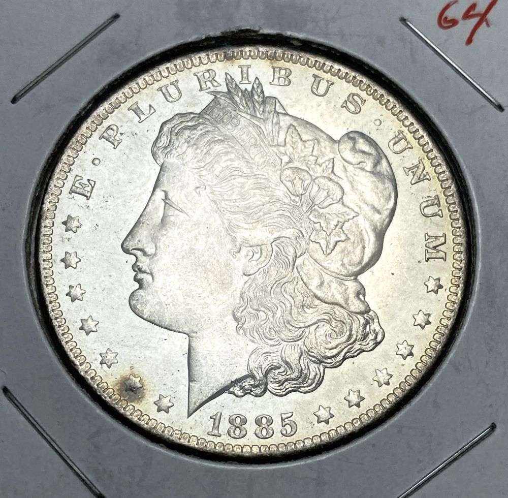 Sold1885-O MORGAN SILVER DOLLAR MS641885-O MORGAN SILVER DOLLAR MS64. WINNER SHALL RECEIVE (1) ONE COIN OUT OF A NEAR COMPLETE SET OF MORGAN SILVER DOLLARS. BY ORDER OF THE CONSIGNOR, THESE COINS ARE TO BE SOLD WITHOUT EVER BEING CERTIFSee Sold Price