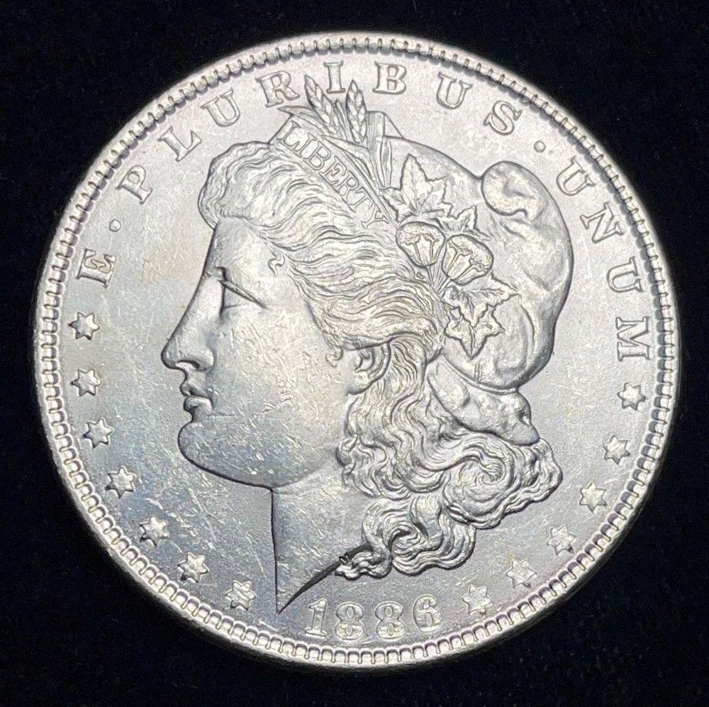 Sold1886 MORGAN SILVER DOLLAR MS631886 MORGAN SILVER DOLLAR MS63. WINNER SHALL RECEIVE (1) ONE COIN OUT OF A NEAR COMPLETE SET OF MORGAN SILVER DOLLARS. BY ORDER OF THE CONSIGNOR, THESE COINS ARE TO BE SOLD WITHOUT EVER BEING CERTIFIESee Sold Price