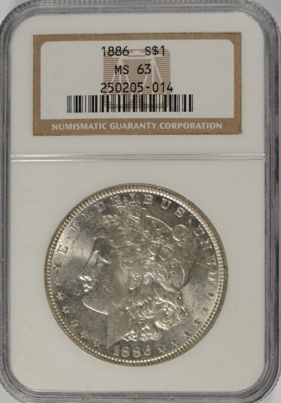1886 MORGAN SILVER DOLLAR, NGC MS-63