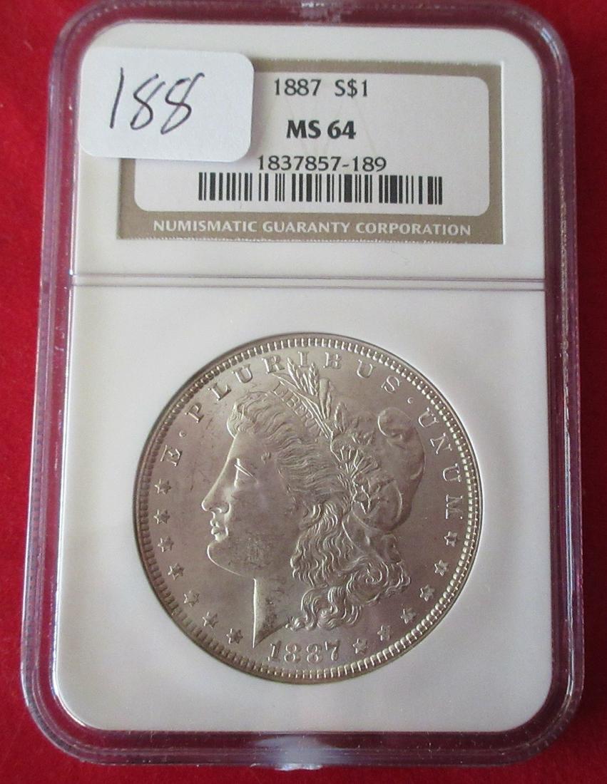 1887 MS64 NGC graded Morgan silver dollar.
