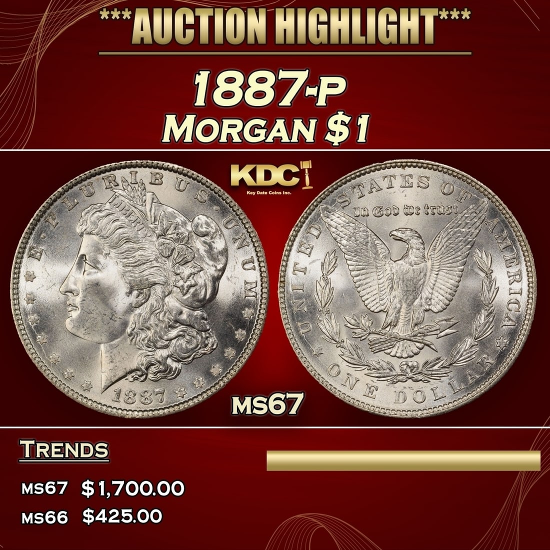 1887-p Morgan Dollar $1 Grades ms67