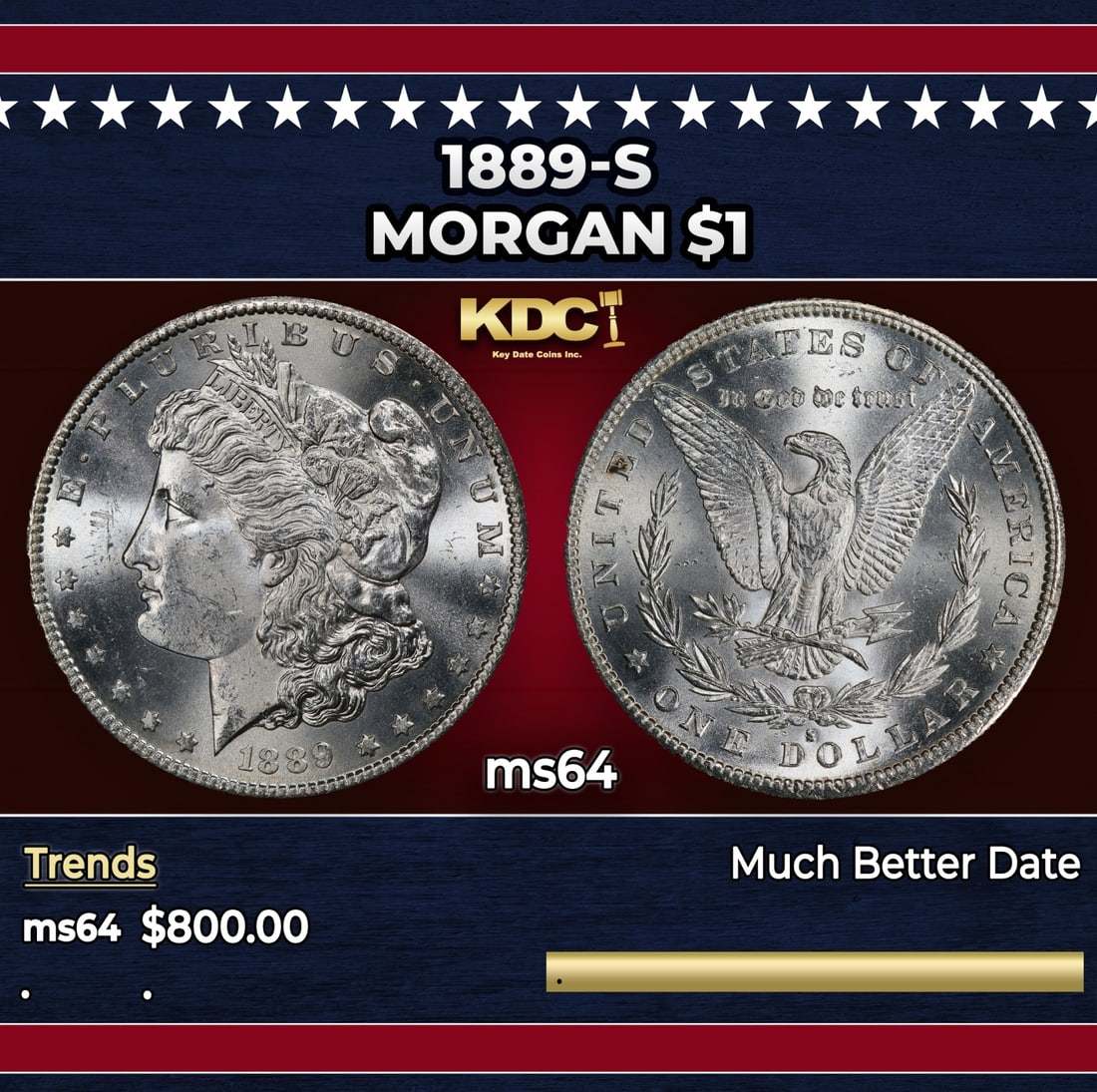 1889-s Morgan Dollar $1 Grades ms64