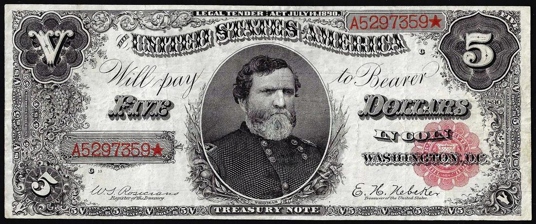 1890 $5 Treasury Note PCGS 64