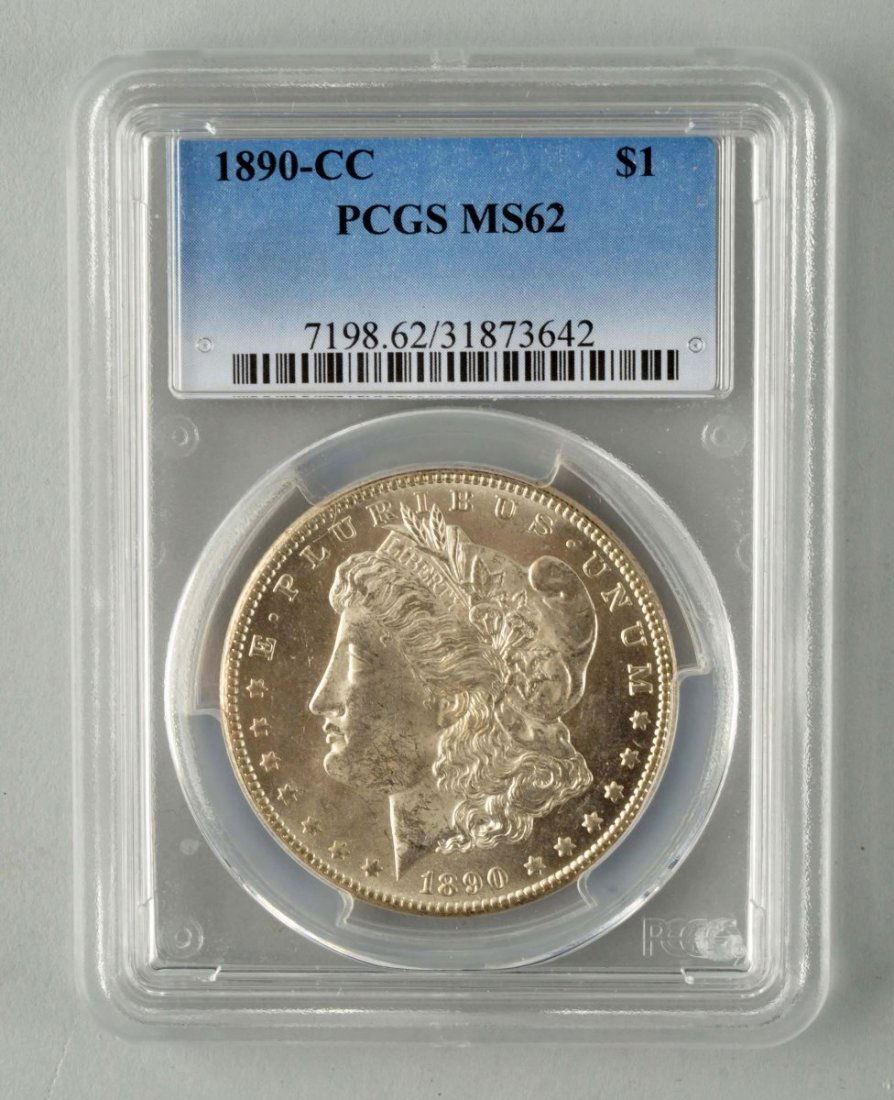 Sold1890-CC Silver Morgan Dollar PCGS MS631890-CC Silver Morgan Dollar PCGS MS63 IMPORTANT: Before bidding, please read the terms and conditions. When you registered for the auction you agreed to these terms and will be required to comply witSee Sold Price