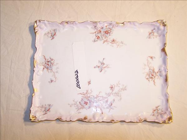 SoldHaviland and Co. Limoges Porcelain Floral TrayA beautiful scalloped-rim tray adorn with hand-painted roses and gilt trim. Artist signed on the front. Haviland and Co. backstamp. Artist: N. Luce Issued: 1888-1896 Dimensions: 14.25"L x 9.5"W x 1.25See Sold Price
