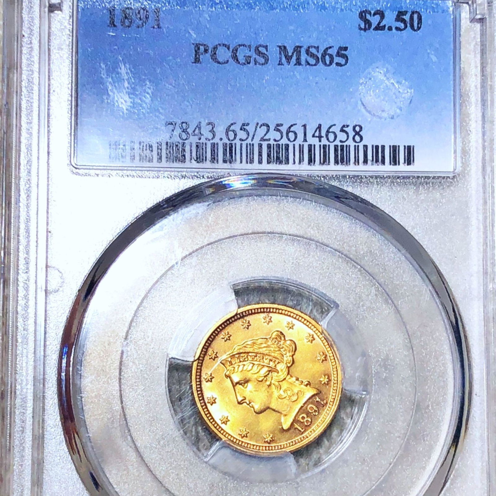 1891 $2.50 Gold Quarter Eagle PCGS - MS65