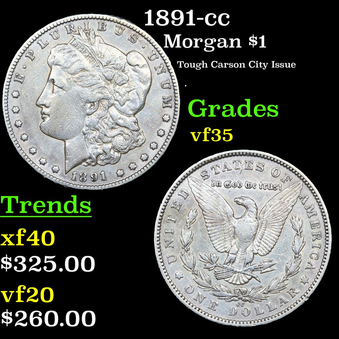 1891-cc Morgan Dollar $1 Grades vf++