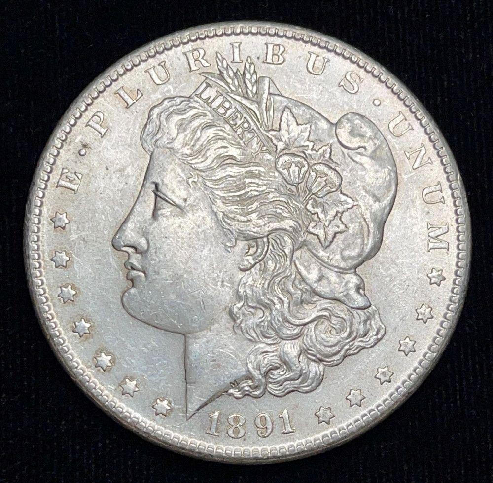 Sold1891-S Morgan Silver Dollar MS64We are pleased to offer this partial original set! Winner shall receive the (1) coin shown here. (IS/UB)See Sold Price