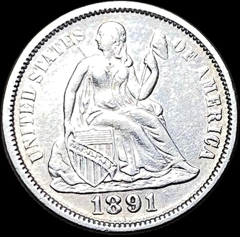 1891 Silver Seated Liberty Dime NEARLY UNCIRCULATED