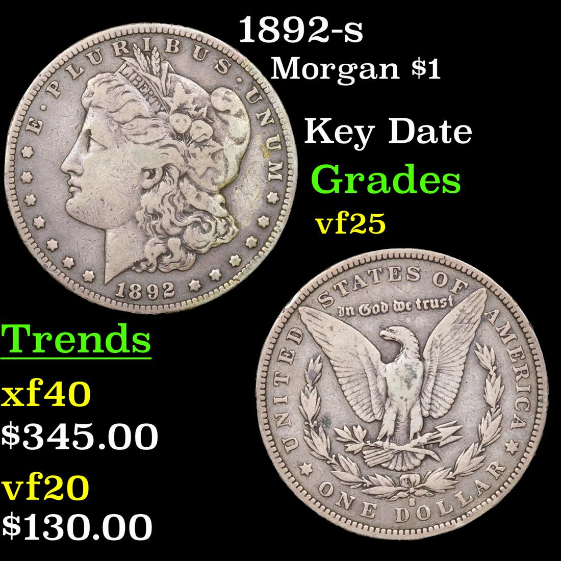 1892-s Morgan Dollar $1 Grades vf+