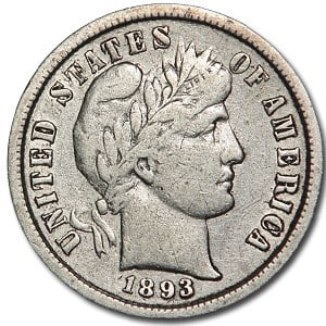 1892 Silver Dime United States Barber Series Philadelphia Mint