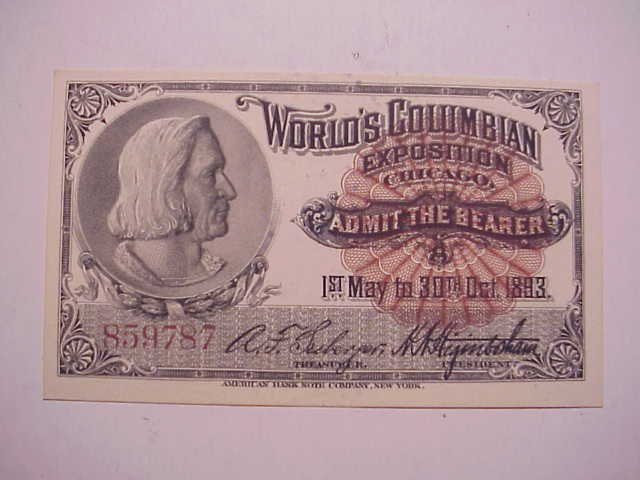 1893 VF Columbian Exposition Ticket
