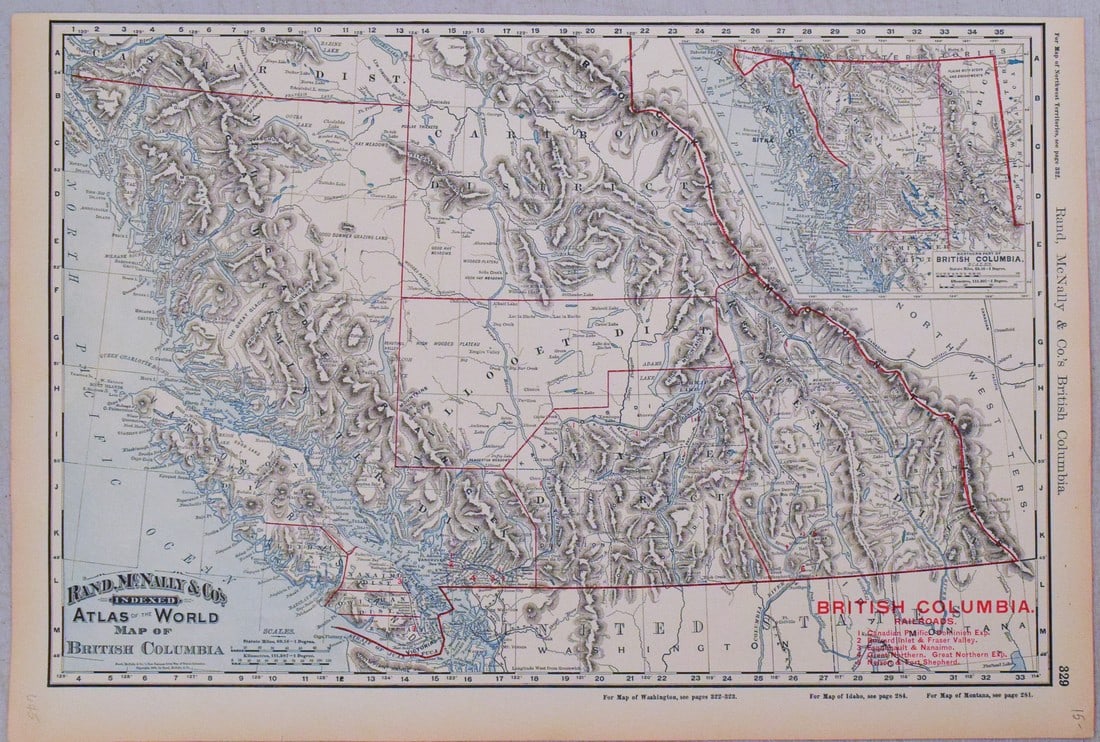 1894 Rand McNally Map of British Columbia -- Indexed Atlas of the World Map of British Columbia
