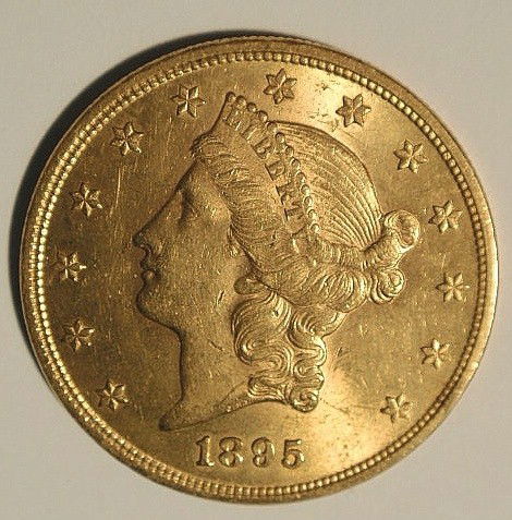 1895 Double Eagle twenty-dollar gold coin, BU.