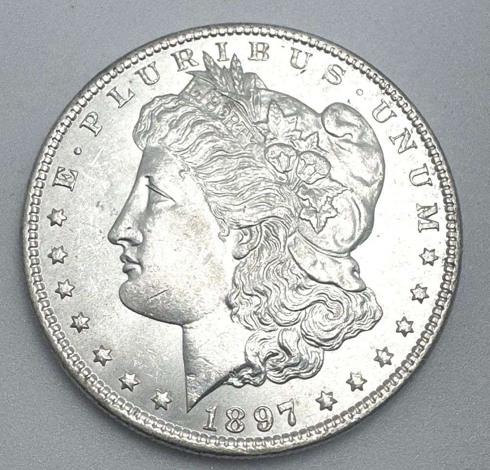 Sold1897 Morgan Silver Dollar MS64 or AboveWinner shall receive the exact coin shown here. (EM/B)See Sold Price