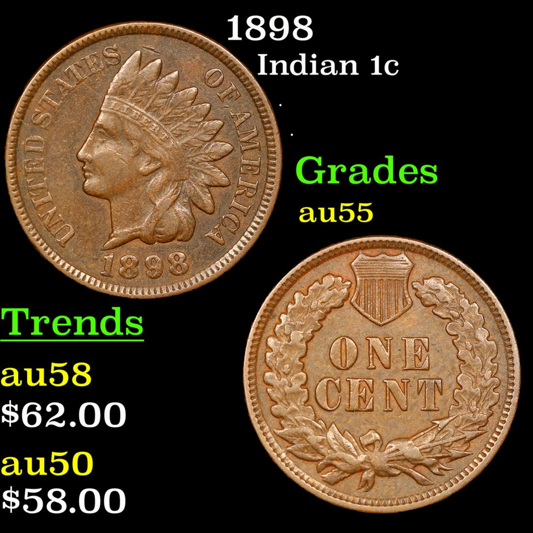 1898 Indian Cent 1c Grades Choice AU