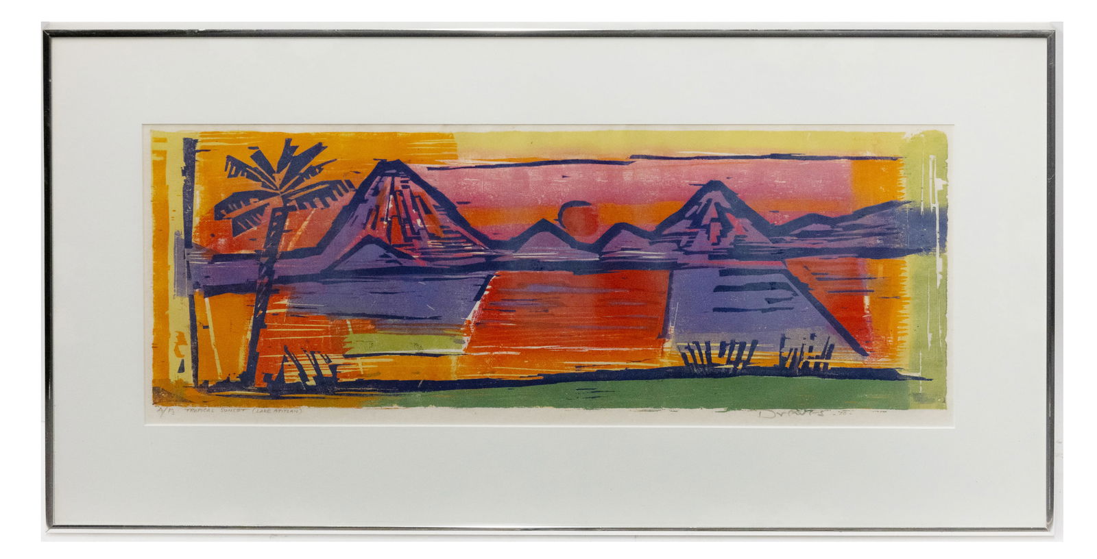 Werner Drewes, Tropical Sunset Lake Atitlan, Color Wood Cut on Paper