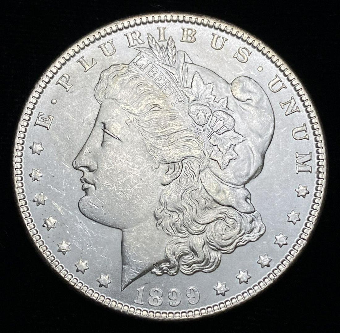 Sold1899-P Morgan Silver DollarBrilliant Uncirculated Condition with overall toning, a high grade Morgan dollarSee Sold Price