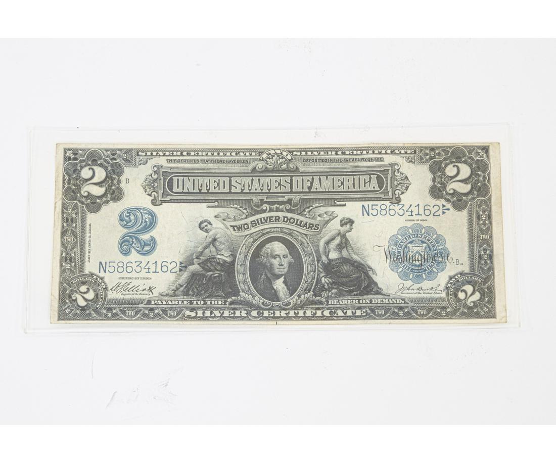 Sold1899 $2 SILVER CERTIFICATE U.S. NOTELARGE SIZE U.S. CURRENCY - TWO SILVER DOLLARS ON DEMANDSee Sold Price