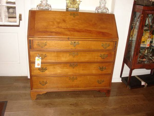 18C. AMER. MAPLE SLANT FRONT DESK, FITTED INTERIOR