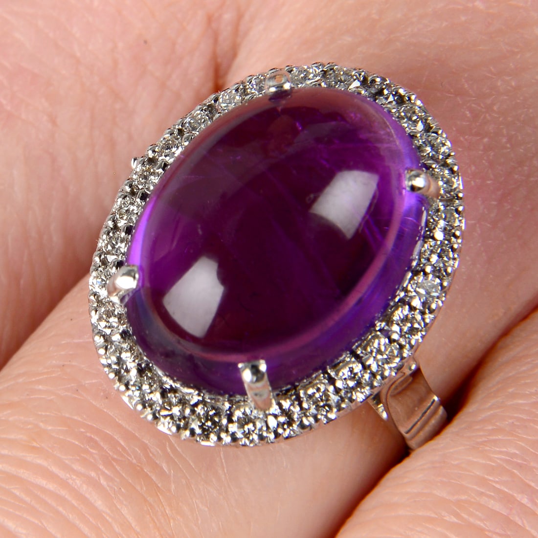 14k Gold 6.0 Ct Natural Amethyst & Diamond Ring