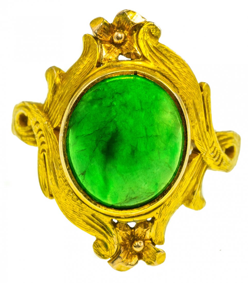 Art Nouveau 14k 18k Gold Jade Ring