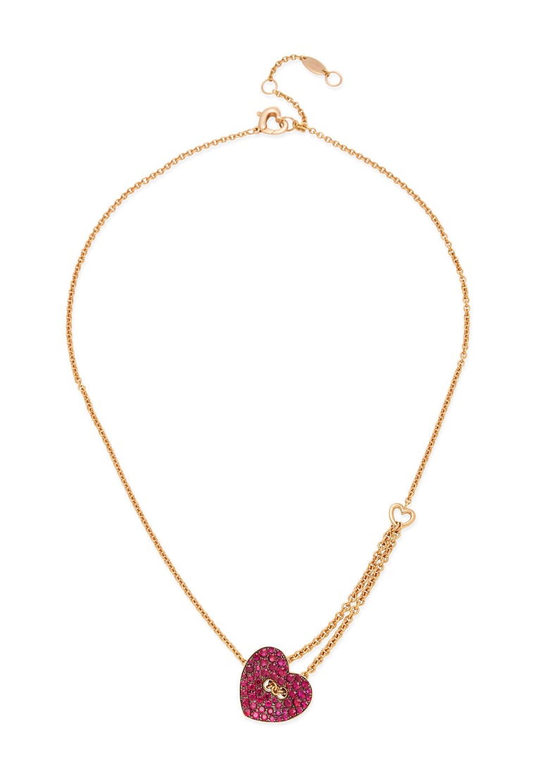 18CT GOLD AND RUBY HEART PENDANT NECKLACE